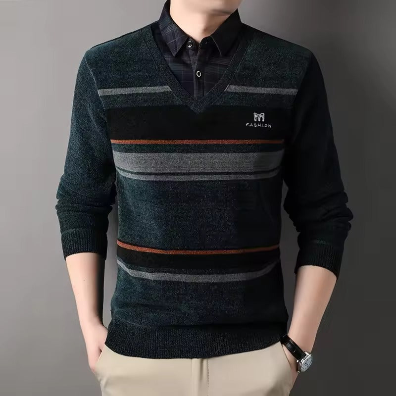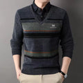 Men’s Pullover Sweater – Fleece Blend – Regular Fit – Crew Neck – Striped Knit Pattern