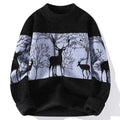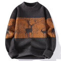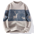 Men’s Pullover Sweater – Loose Fit – Wool Knit – Mock Neck – Deer Pattern – Ribbed Trim