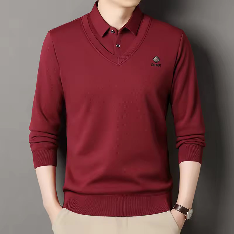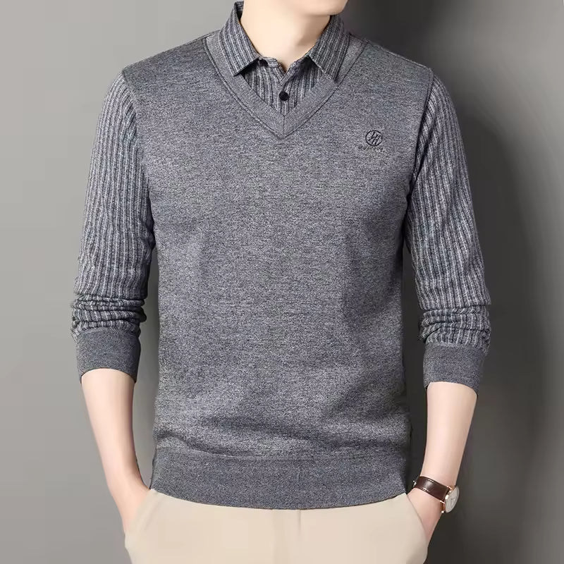 Men’s Pullover Sweater – Slim Fit – Wool Blend – Polo V-Neck – Ribbed Sleeves