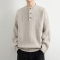 Men’s Pullover Sweatshirt – Relaxed Fit – Wool Blend Knit – Henley Neck – Ribbed Trim