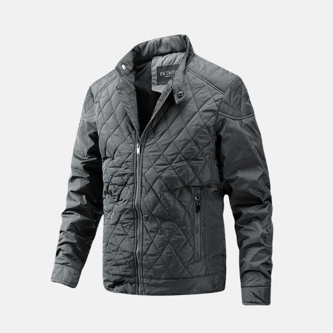 Men’s Quilted Coat – Insulated – Regular Fit – Stand Collar – Zipper Pockets