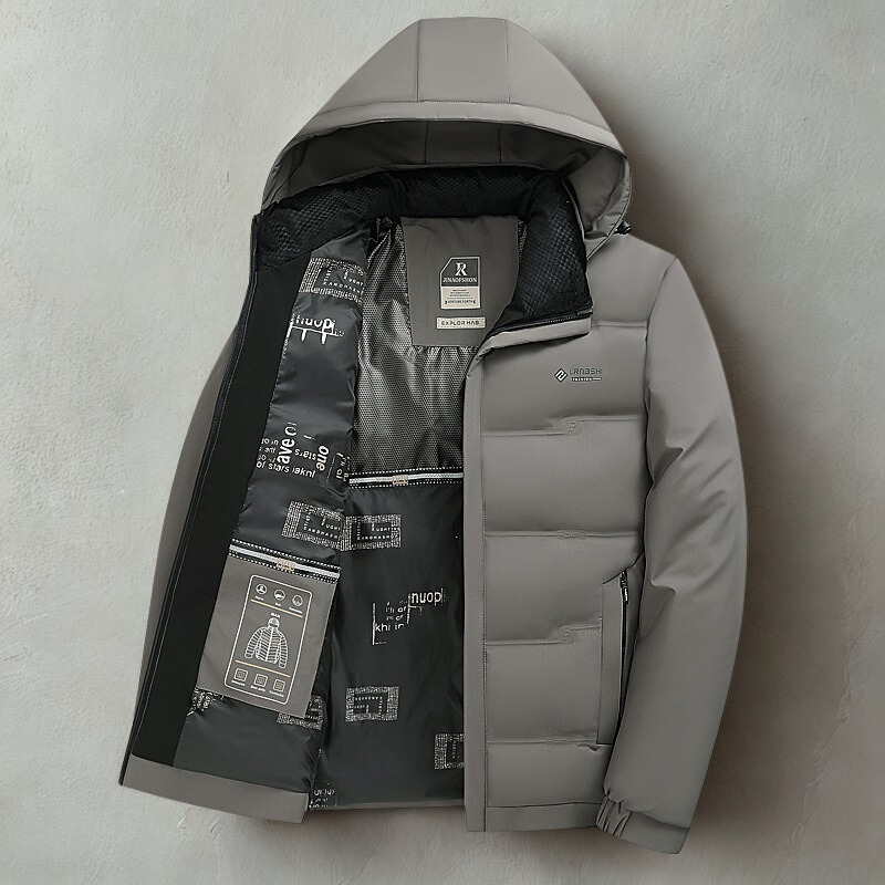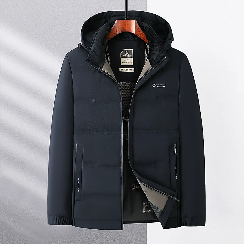 Men’s Quilted Jacket – Regular Fit – Insulated Hooded – Zipper Closure – Hip Length