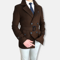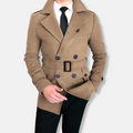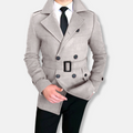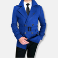 Men’s Short Jacket – Tailored Fit – Wool Blend – Double-Breasted – Belted Waist