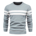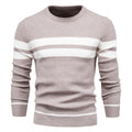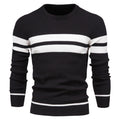 Men’s Sweater – Slim Fit Knit – Ribbed Texture – Crew Neck Stripe Detail