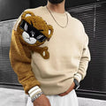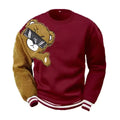 Men’s Sweatshirt – Relaxed Fit – Cotton Feel – Embroidered Bear – Textured Sleeve