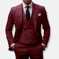 Men’s Three-Piece Suit Set – Slim Fit – Wool Blend – Double-Breasted – Notch Lapel