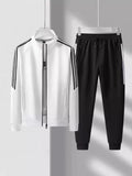 Men’s Two-Piece Tracksuit Set – Regular Fit – High Collar Zip Jacket – Tapered Joggers – Striped Trim