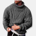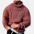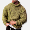 Men’s Turtleneck Sweater – Wool Blend – Relaxed Fit – Cable Knit Pullover