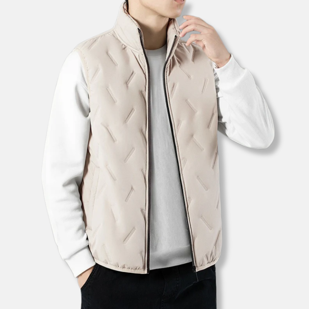 Men’s Vest – Quilted Chevron – Insulated Padded – Stand Collar – Regular Fit by Elegance-Urban offers warmth and style. This sleeveless vest features a quilted chevron pattern, stand collar, and a comfortable regular fit. Perfect for layering, it's your go-to piece for transitional weather, offering freedom of movement and versatile style.
