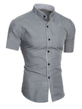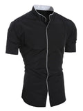 Refine Your Look with the Men's Slim Fit Stand Collar Short Sleeve Shirt