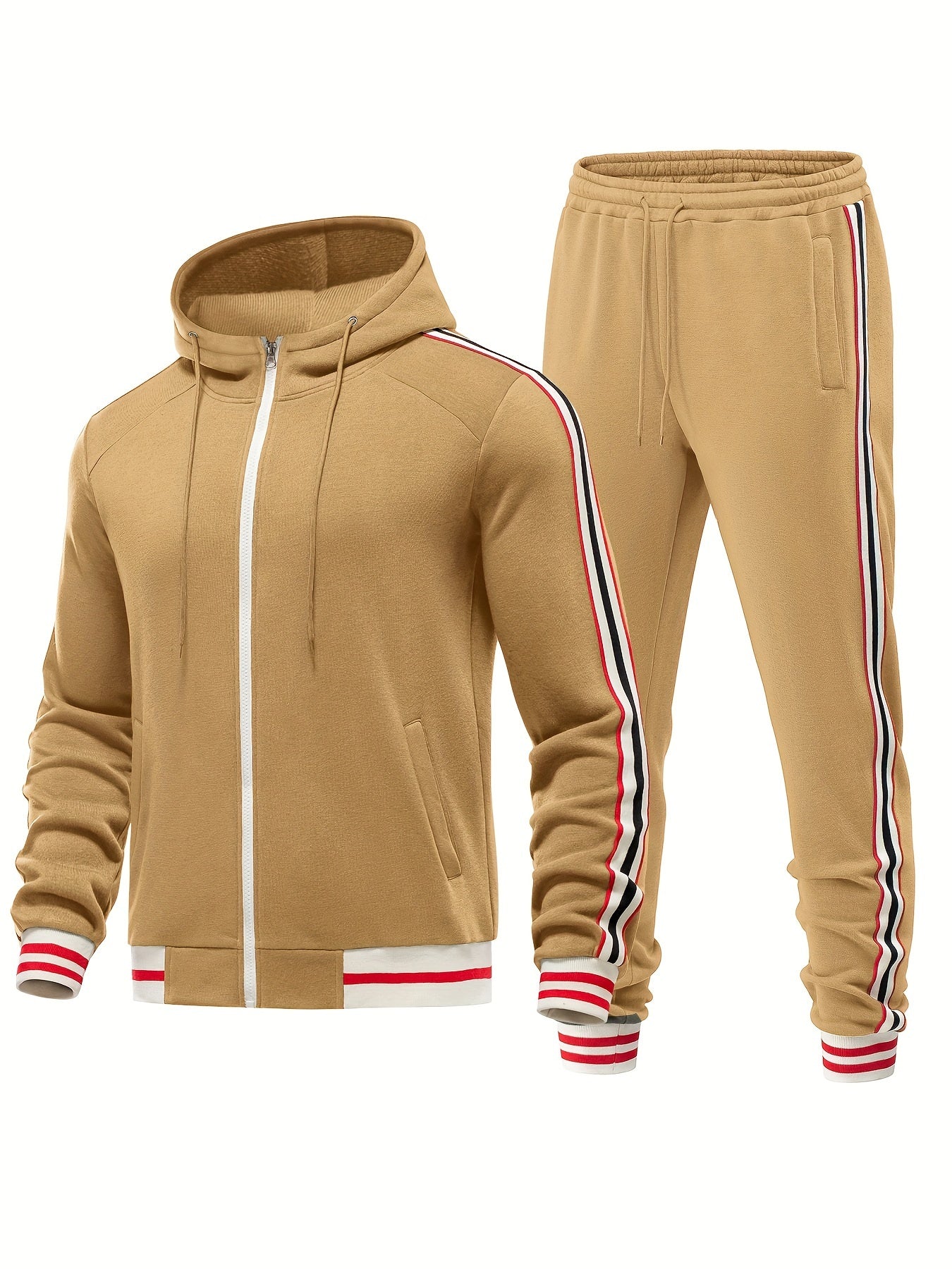 This 2-piece tracksuit features a sleek hoodie and jogger combo with a modern stripe pattern, ideal for both workouts and casual outings. Crafted for every season, it offers a regular fit that flatters all body types and ensures lasting durability for daily wear. Designed with functional pockets and a trendy hooded collar, this tracksuit keeps practicality at the forefront while maintaining a contemporary look.