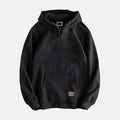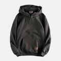 Embrace relaxed comfort with this men's cotton hoodie, designed for casual occasions. Its relaxed fit and solid pattern offer effortless style, while the hooded neckline and long sleeves provide classic appeal. Practical details like a quarter-zip, kangaroo pocket, and ribbed finishes complete this hip-length piece.