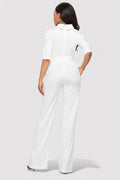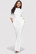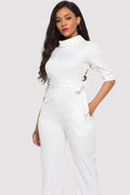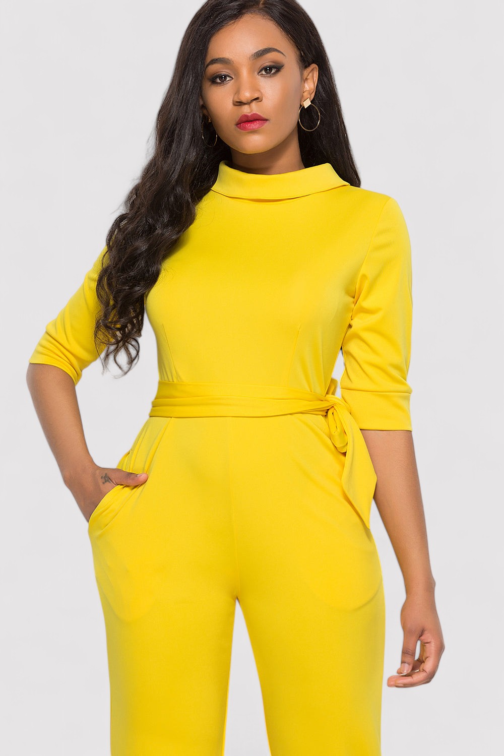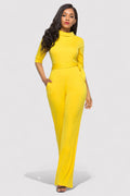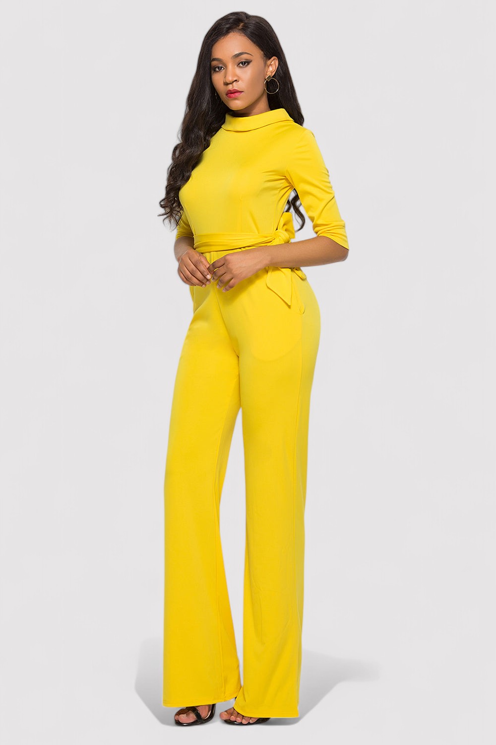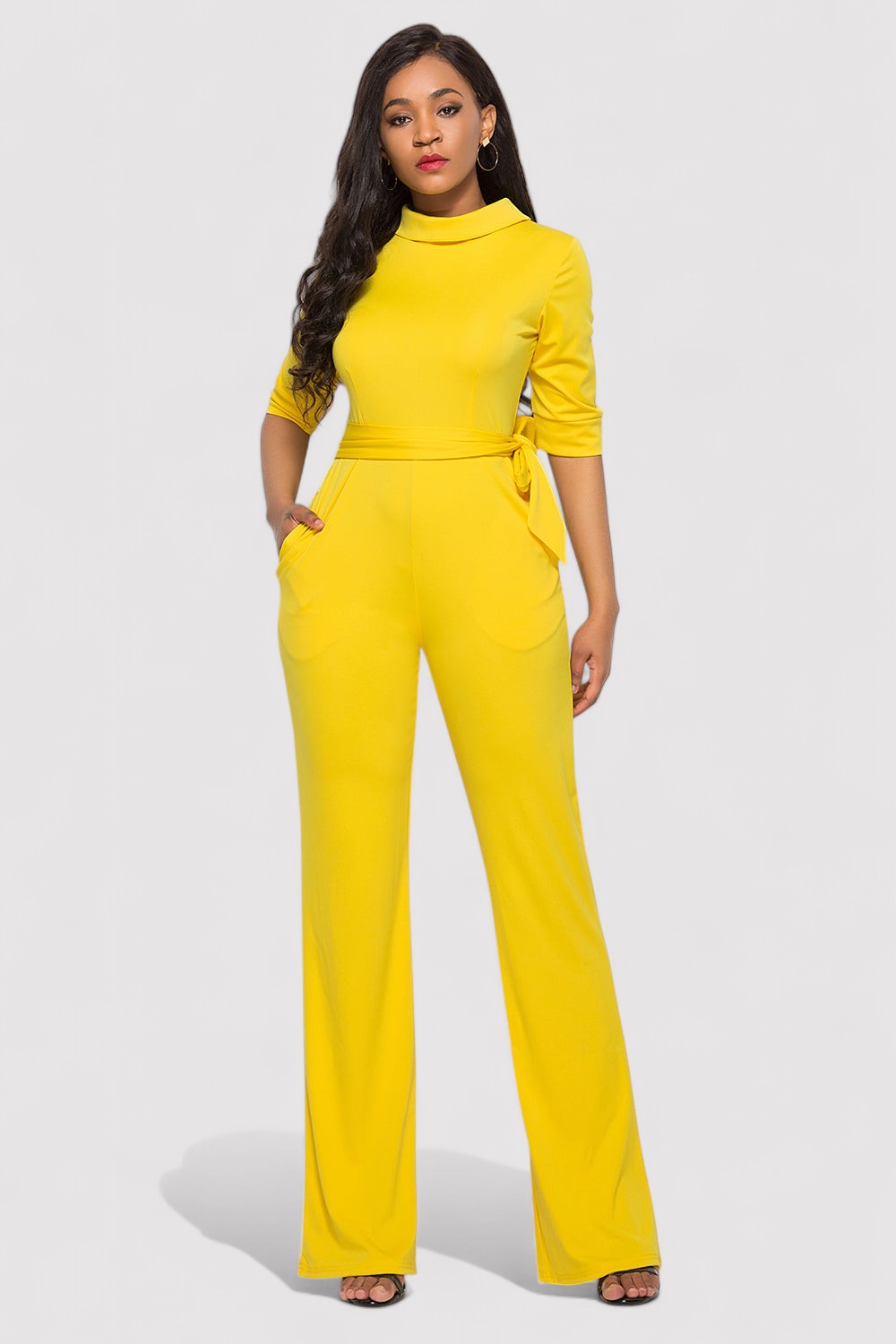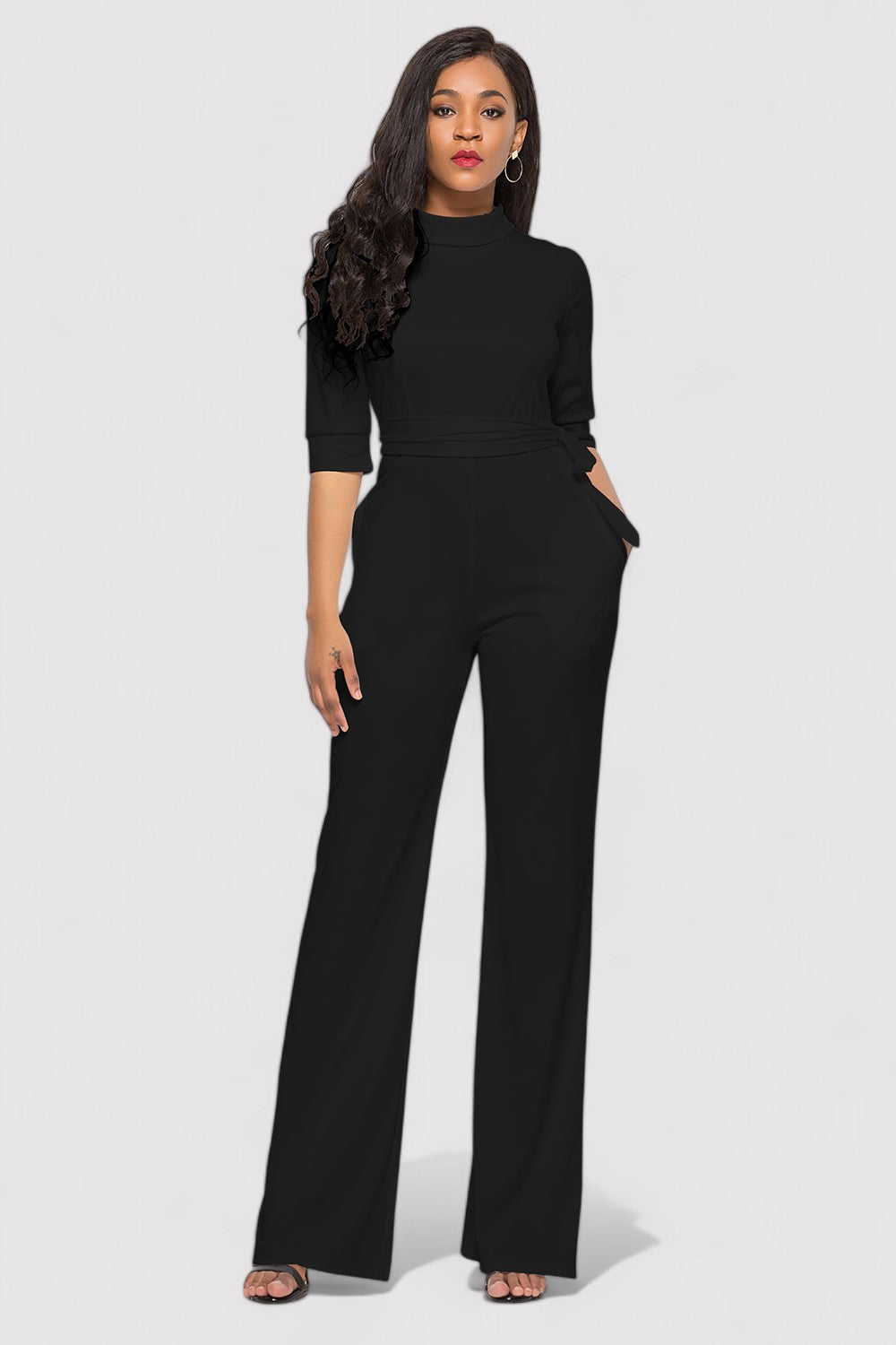Effortlessly chic: discover our Women’s Jumpsuit – Stretch Fabric – Wide Leg – Belted Waist – 3/4 Sleeve – Pockets. This elegant one-piece features a flattering belted waist, comfortable stretch fabric and practical pockets. Perfect for any occasion.