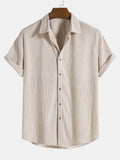 Men's Short-Sleeve Button-Up Shirt & Shorts Set - Breathable Fabric - Relaxed Fit - Elastic Waist Drawstring Shorts - Casual Resort Wear. This breathable set offers relaxed comfort with a stylish button-up shirt and elastic waist drawstring shorts. Perfect for casual outings or vacation wear.