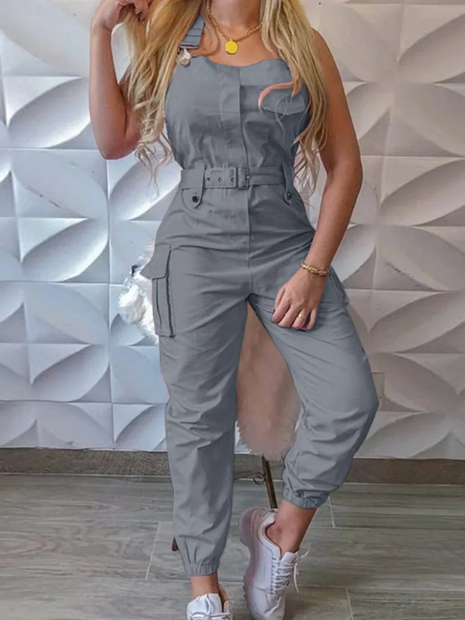 Sleeveless Utility Cargo Jumpsuit