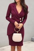 V-Neck Buttoned Blazer Mini Dress