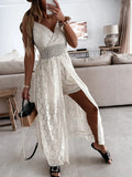 Perfect for sunny days and chic nights, the 'Summer Lace V-Neck Sleeveless Jumpsuit' is designed to blend elegance with ease. Featuring a delicate lace detailing, a flattering high-waist fit, and lightweight, breathable fabric, this jumpsuit offers a feminine yet comfortable silhouette. Ideal for summer outings, beach vacations, or casual parties, this piece is the ultimate wardrobe must-have from Elegance-Urban.
