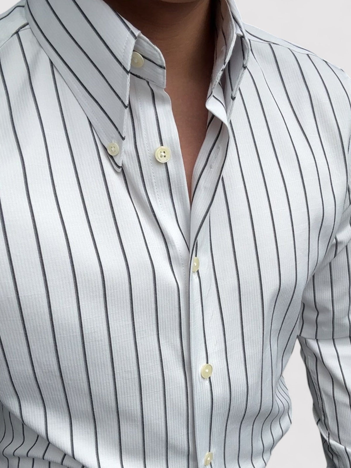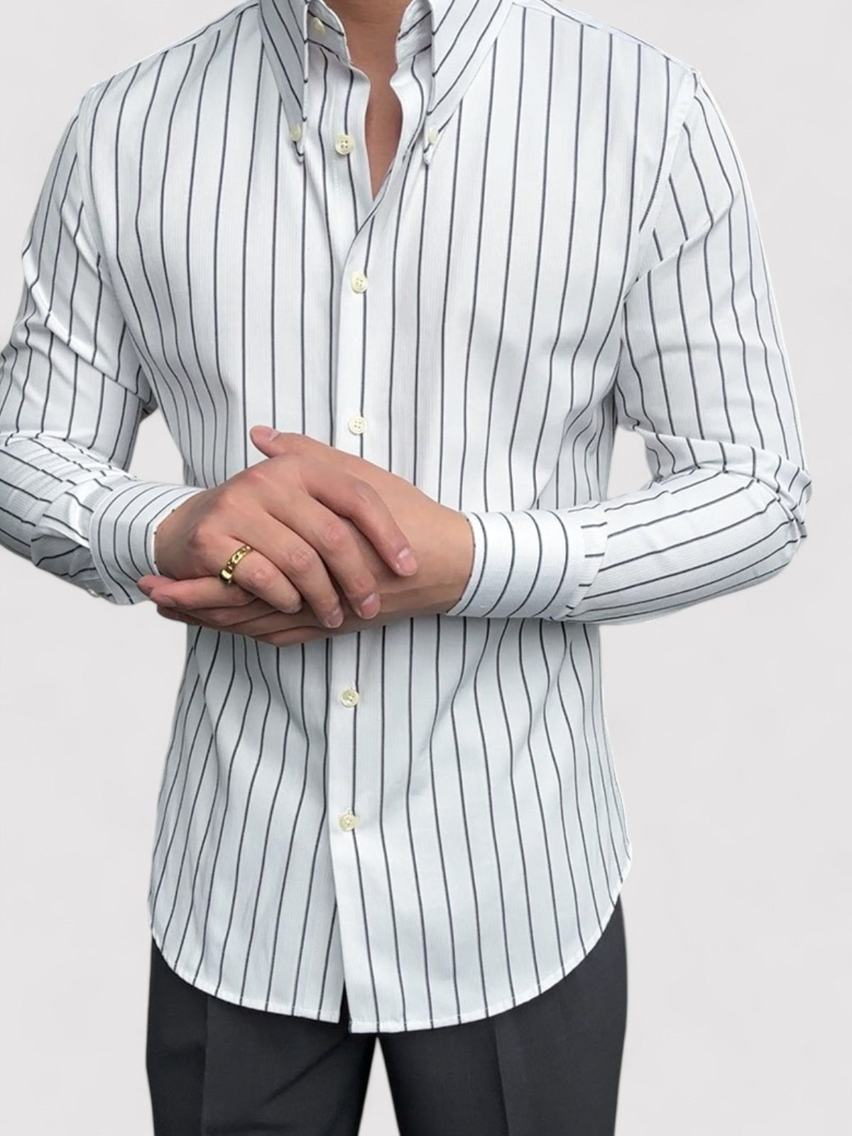 Elevate your wardrobe with this slim-fit striped shirt that redefines refined style. Ideal for formal meetings, casual outings, and evening gatherings, its Italian-inspired striped design brings an air of effortless charm. Made from premium breathable fabric, it offers unmatched comfort and sophistication throughout the day. This versatile piece is perfect for any occasion, blending tradition and modern elegance seamlessly.