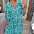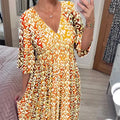 Elevate your wardrobe with this Women's Midi Dress - V-Neck - Lightweight & Breathable - 3/4 Sleeve - Abstract Print from Elegance-urban.com. Featuring a flattering V-neck and breezy 3/4 sleeves, this dress boasts a comfortable, lightweight design and eye-catching abstract print, perfect for effortless style.