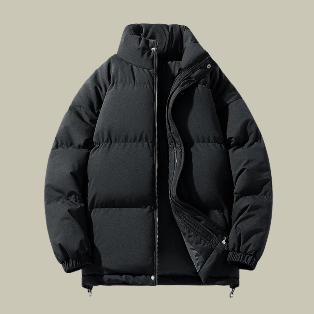 Layer this puffer jacket over a sweater and jeans for a classic winter outfit. Add boots for extra warmth and a rugged look.