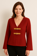 Women’s Blazer Jacket – Tailored Fit – Wool Texture – V-Neck – Buckle Closure