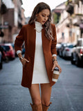 Women’s Blazer – Structured Fit – Open Front – Long Sleeve – Midi Length – Minimalist Style