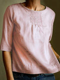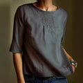 Women’s Blouse – Cotton Linen Blend – Loose Fit – 3/4 Sleeve – Pleated Front by Elegance-Urban. Experience breezy comfort with this cotton-linen blend blouse. Its relaxed fit, 3/4 sleeves, and elegant pleated front make it perfect for effortless everyday style.