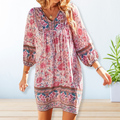 Elegance-Urban's Women’s Boho Dress – Floral Print – V-Neck – Long Sleeve – Relaxed Fit – Knee Length. Embrace effortless style with this breezy, floral-printed dress. Perfect for warm days and casual outings, featuring a flattering V-neck and comfortable relaxed fit.