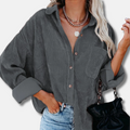 Women’s Corduroy Shirt – Oversized Fit – Button-Up – Ribbed Texture – Hip Length