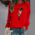 Women’s Crew Neck Sweatshirt – Relaxed Fit – Cat Graphic – Soft Cotton Feel