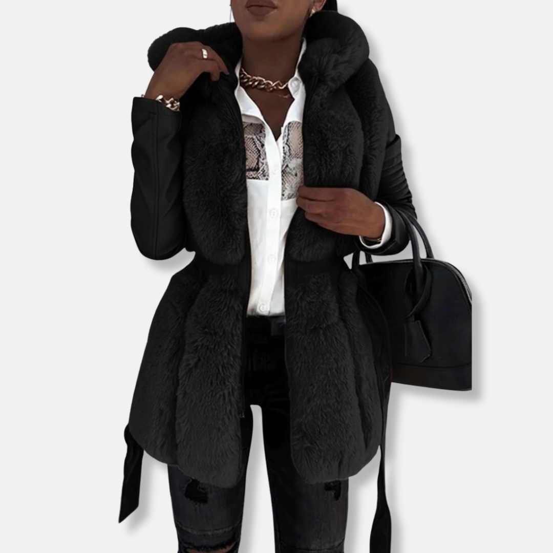 Elegance-Urban presents the Women’s Faux Leather Jacket – Tailored Fit – Faux Fur Collar – Belted Mid-Thigh Length. This striking jacket features a sleek, tailored silhouette, a luxurious faux fur collar, and a flattering belted design. This mid-thigh length piece offers both style and warmth, making it a versatile addition to your wardrobe.