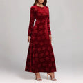 Women’s Full-Length Dress – Velvet A-Line Fit – Floral Embossed – Long Sleeve Elegance