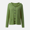 Women’s Hooded Cardigan – Wool Knit – Relaxed Fit – Button Front – Patch Pockets