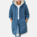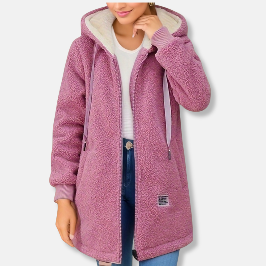 Women’s Hooded Jacket – Lambskin Plush – Oversized Fit – Zipper Front – Mid-Length