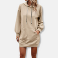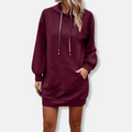 Women’s Hooded Mini Dress – Quilted Texture – Oversized Fit – Long Sleeve Pouch Pocket