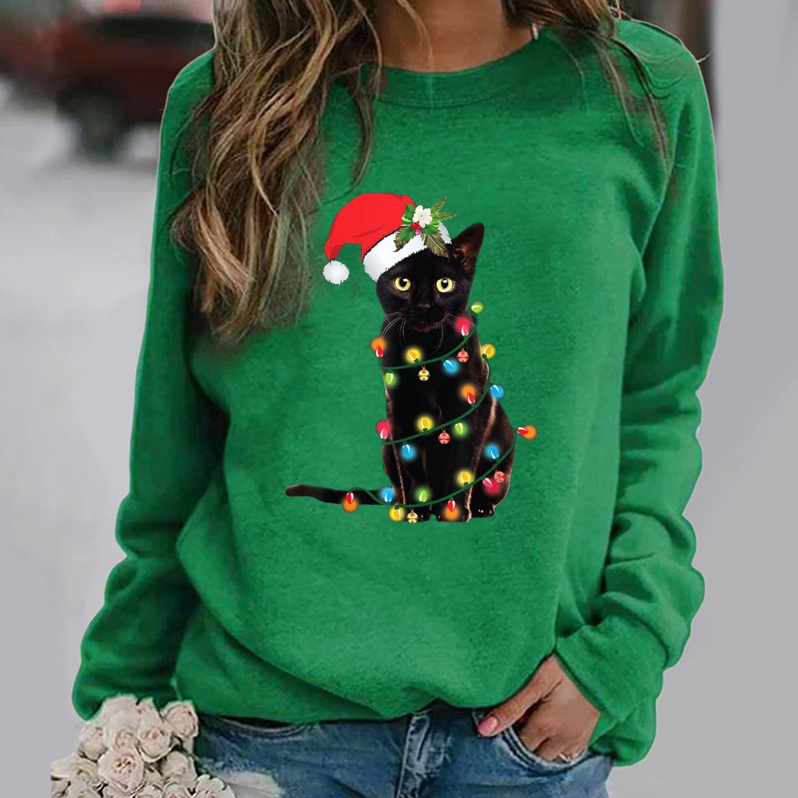 Women’s Hooded Sweatshirt – Cotton Blend – Relaxed Fit – Crew Neck – Cat Graphic
