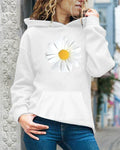 Women’s Hooded Sweatshirt – Relaxed Fit – Soft Fleece – Daisy Print – Pullover Style