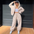 Women’s Hoodie and Jogger Two-Piece Set – Oversized Fit – Cotton Fleece – Zip Front – Drawstring Waist
