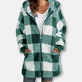 Women’s Hooded Jacket – Oversized Fit – Soft Knit – Check Pattern – Full Zip – Casual Layer