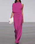 Effortless elegance defines our Women’s Jumpsuit – Sleeveless High Neck – Wide Leg – Luxury Fabric Formal Fit. This sophisticated jumpsuit features a flattering wide-leg silhouette, a chic high neckline, and a luxurious satin-inspired material blend, perfect for making a statement at your next special event. This jumpsuit is perfect for an evening event.
