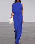 - Design: Sleeveless, high neck, wide leg
