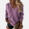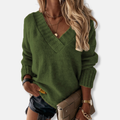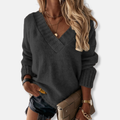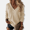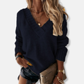Women’s Knit Sweatshirt – Relaxed Fit – Deep V-Neck – Long Sleeve – Ribbed Trim