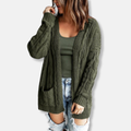 Women’s Knitted Cardigan – Relaxed Fit – Cable Knit – Open Front – Front Pockets