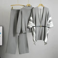 Stay cozy and chic with our Women’s Knitted Lounge Set – Relaxed Turtleneck – Wide-Leg Pants – Belted Cardigan. This three-piece ensemble features a relaxed turtleneck sweater, flowy wide-leg pants, and a stylish belted cardigan for ultimate comfort and effortless style.