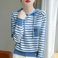 Women’s Knitted Sweater Hoodie – Relaxed Fit – Cotton Blend – Striped – Ribbed Trim