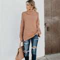 Women’s Knitted Sweater – Relaxed Fit – Chunky Wool Blend – Turtleneck – Ribbed Trim