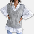 Women’s Knitted Vest – Relaxed Fit – Cable Knit – V-Neck – Hip Length Layering Piece