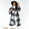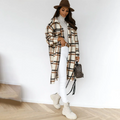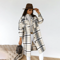 Women’s Long Coat – Relaxed Fit – Checkered Pattern – Wool Feel – Full Length