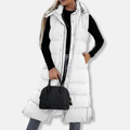 Women’s Long Vest – Quilted Hooded Design – Relaxed Fit – Sleeveless Zip Outerwear