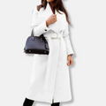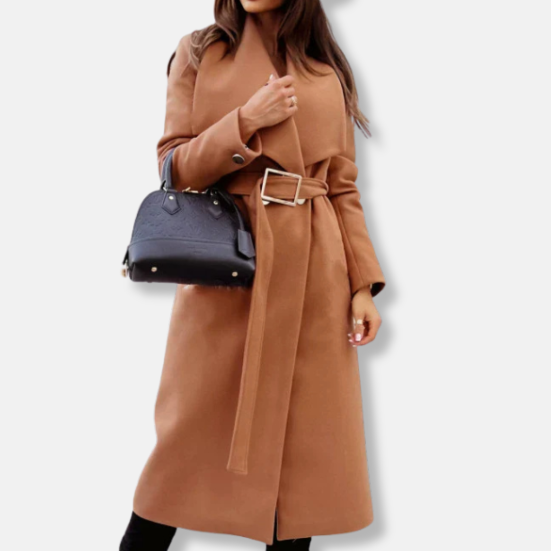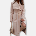 Women’s Longline Coat – Relaxed Tailored Fit – Wool Blend – Draped Lapels – Belted Waist